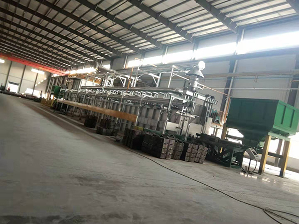 液壓推料裝置→加熱爐前上料臺→推桿式加熱爐→加熱爐后拉料機→升降式淬火水槽→液壓推料裝置→推桿式回火爐→回火爐后拉料機→周轉(zhuǎn)筐